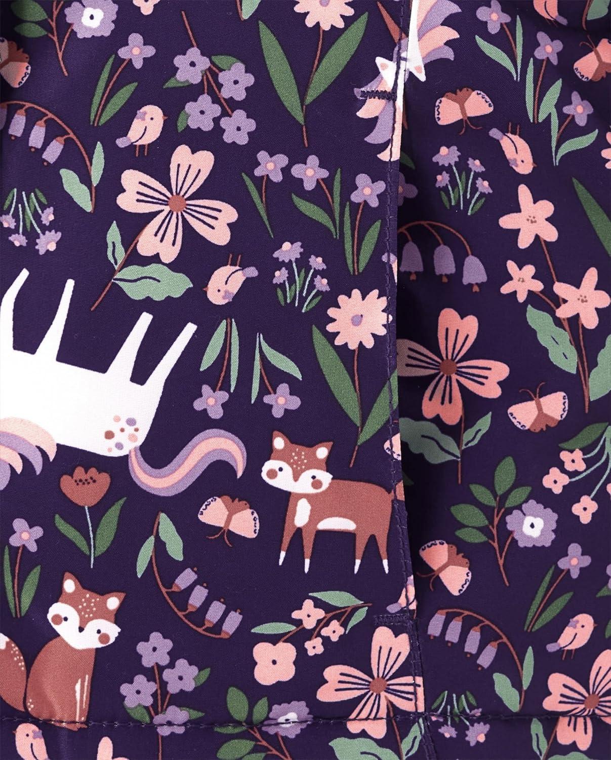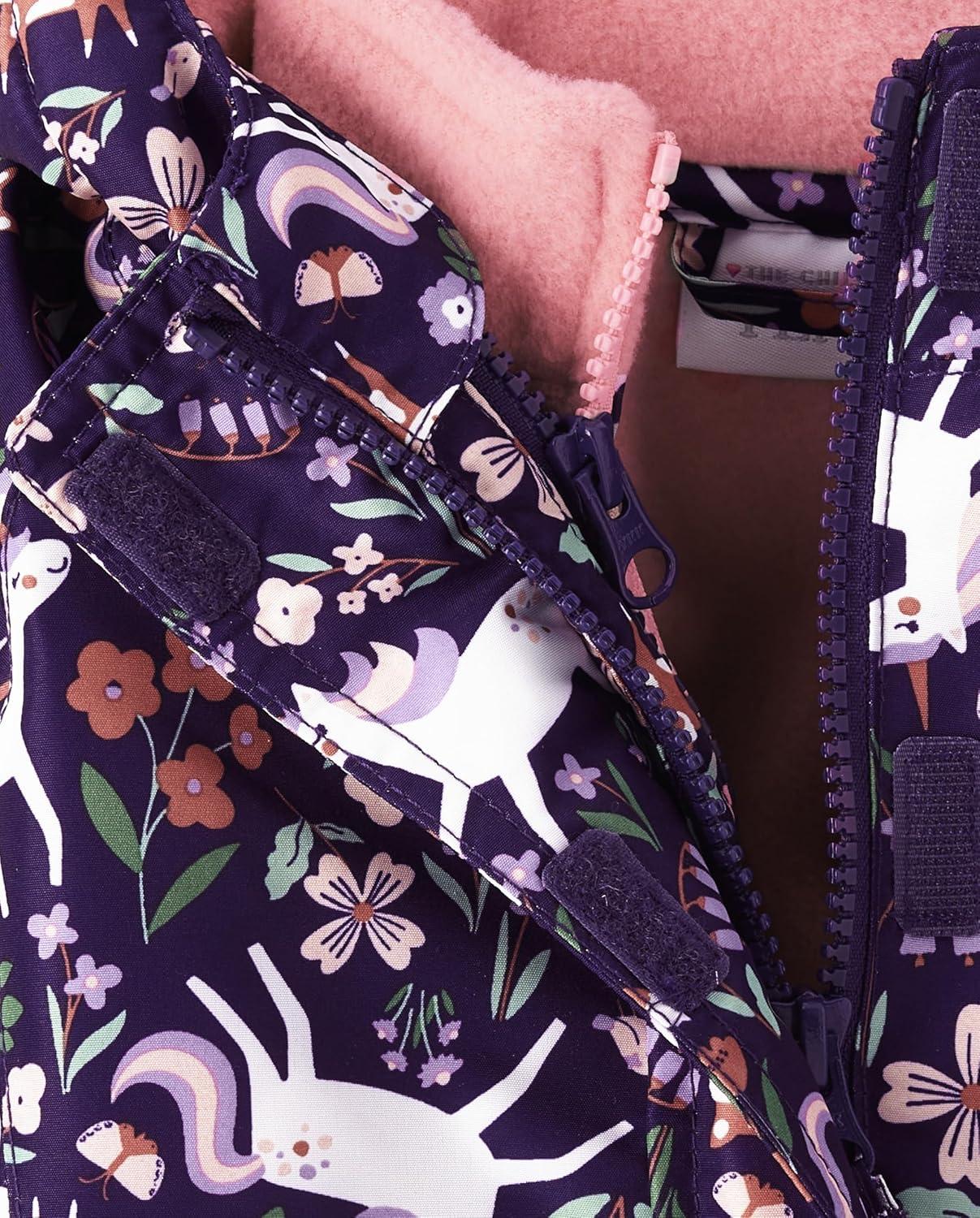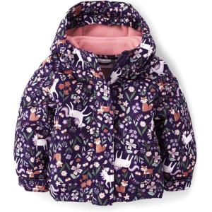 The Children’s Place Baby and Toddler Girls’ Medium Weight Wind-Resistant, Water-Resistant Puffer Jacket(Purple Dinos)