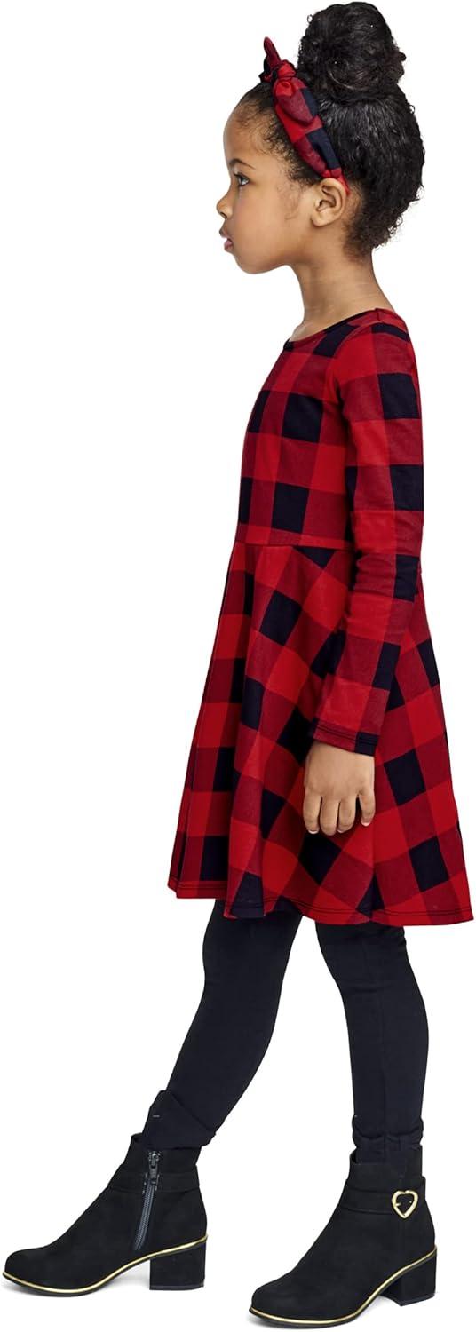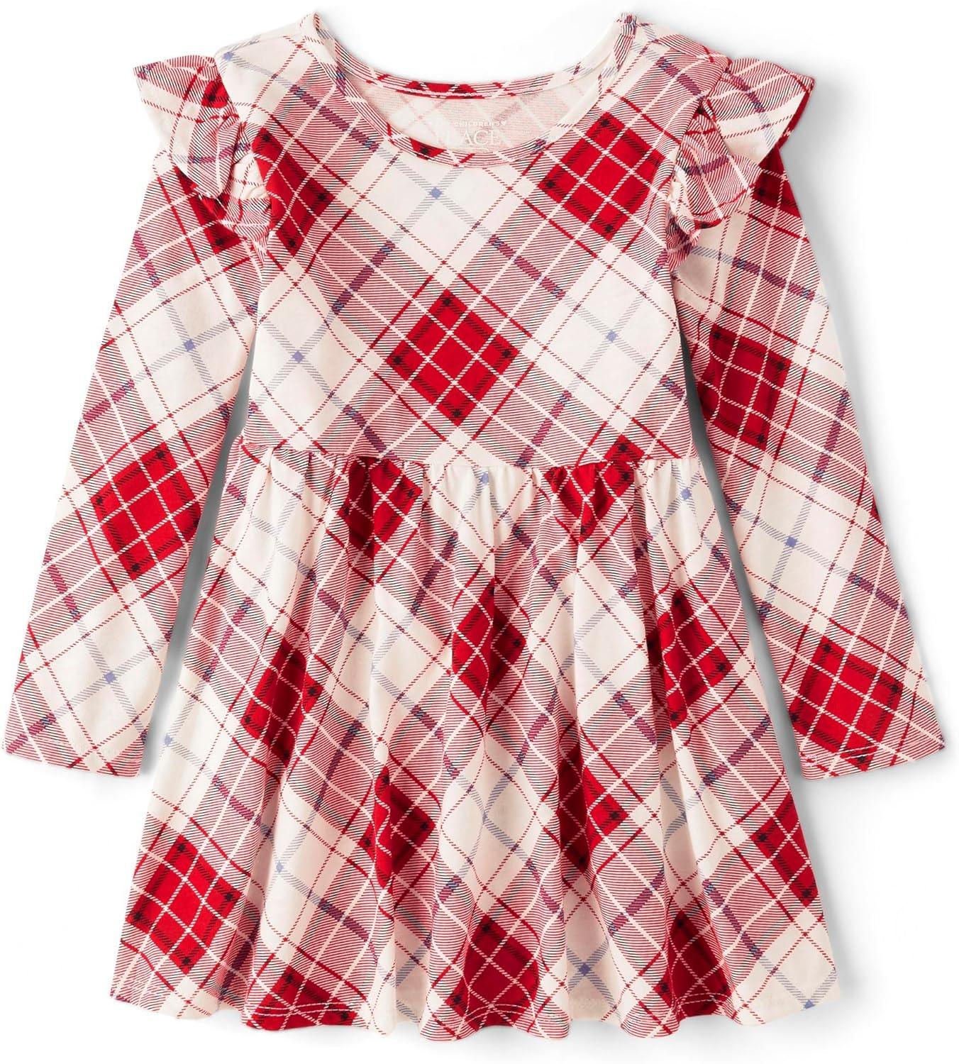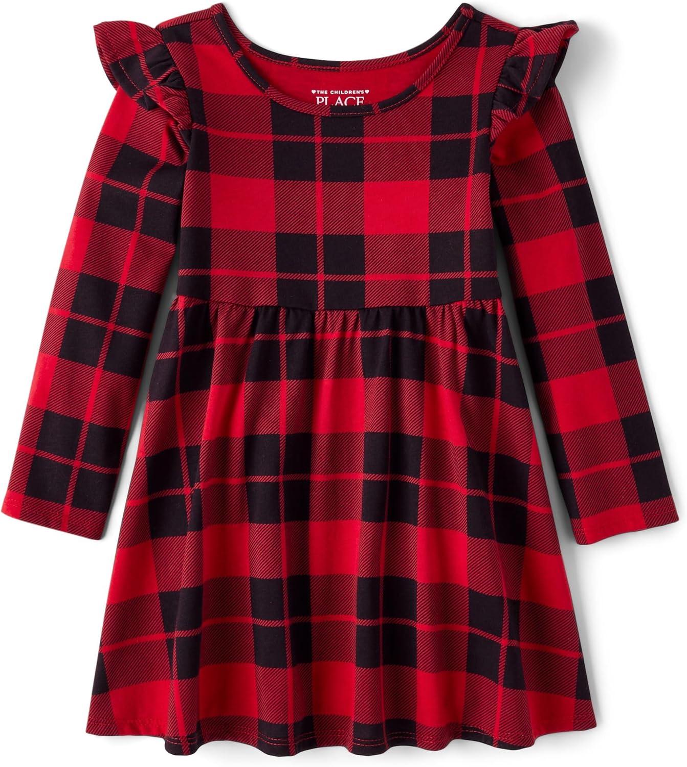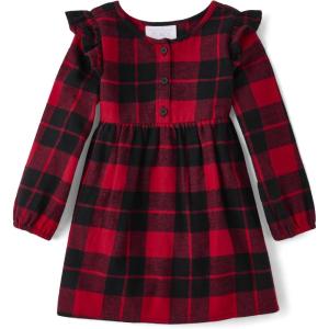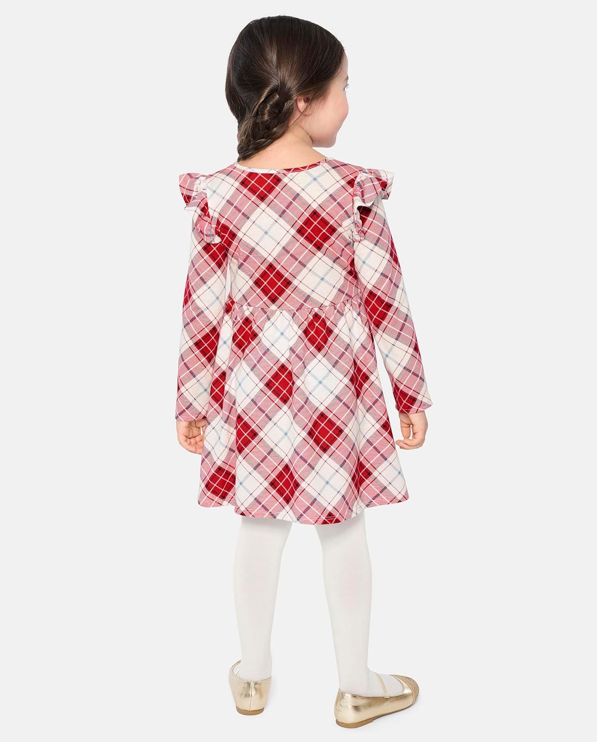 The Children’s Place,Short Sleeve Fashion Dress(Ruby Holiday Plaid)