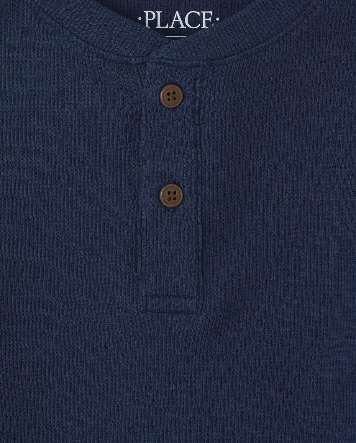 The Children’s Place Boys’ Long Sleeve Rolled Cuff Henley Shirt(Tidal Blue)