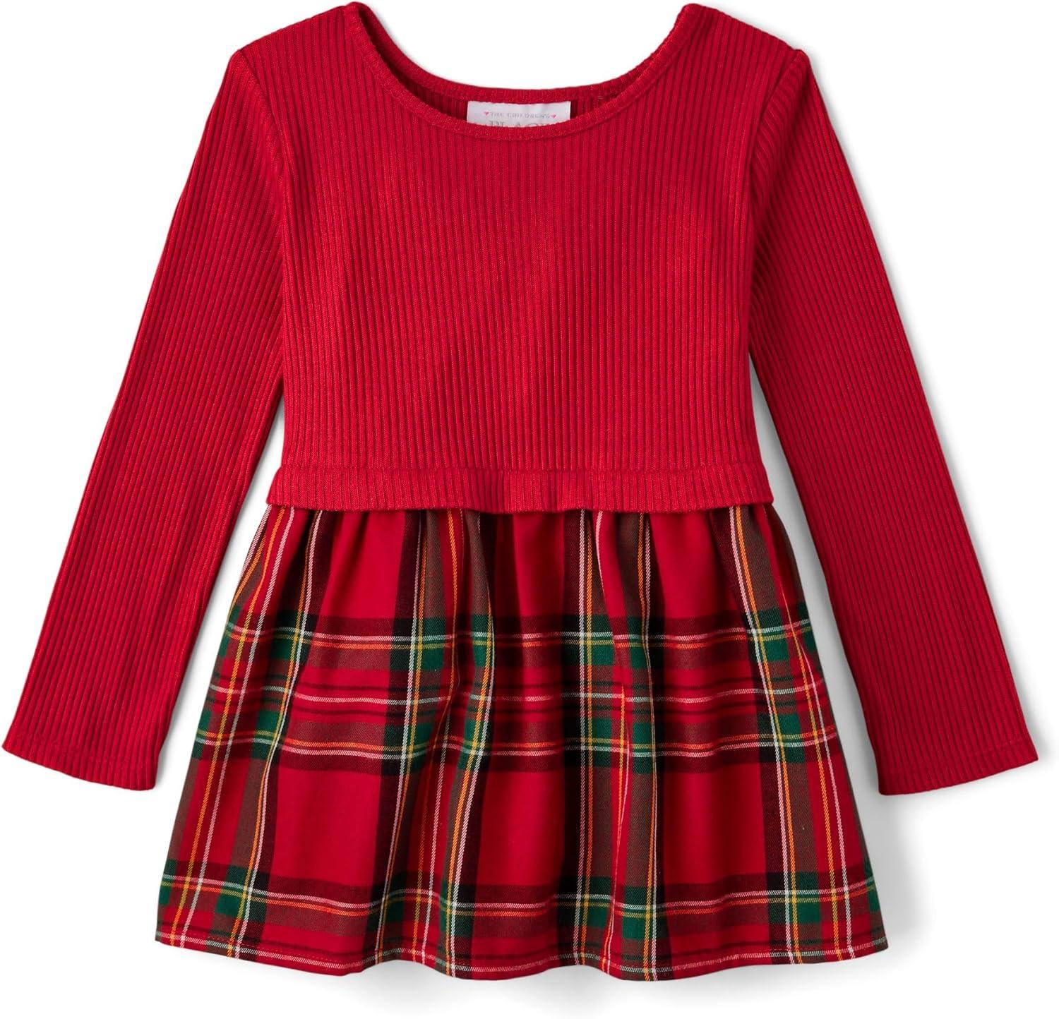 The Children’s Place Baby Girls’ Plaid Flannel Woven Tiered Dress(Classic Red Plaid)