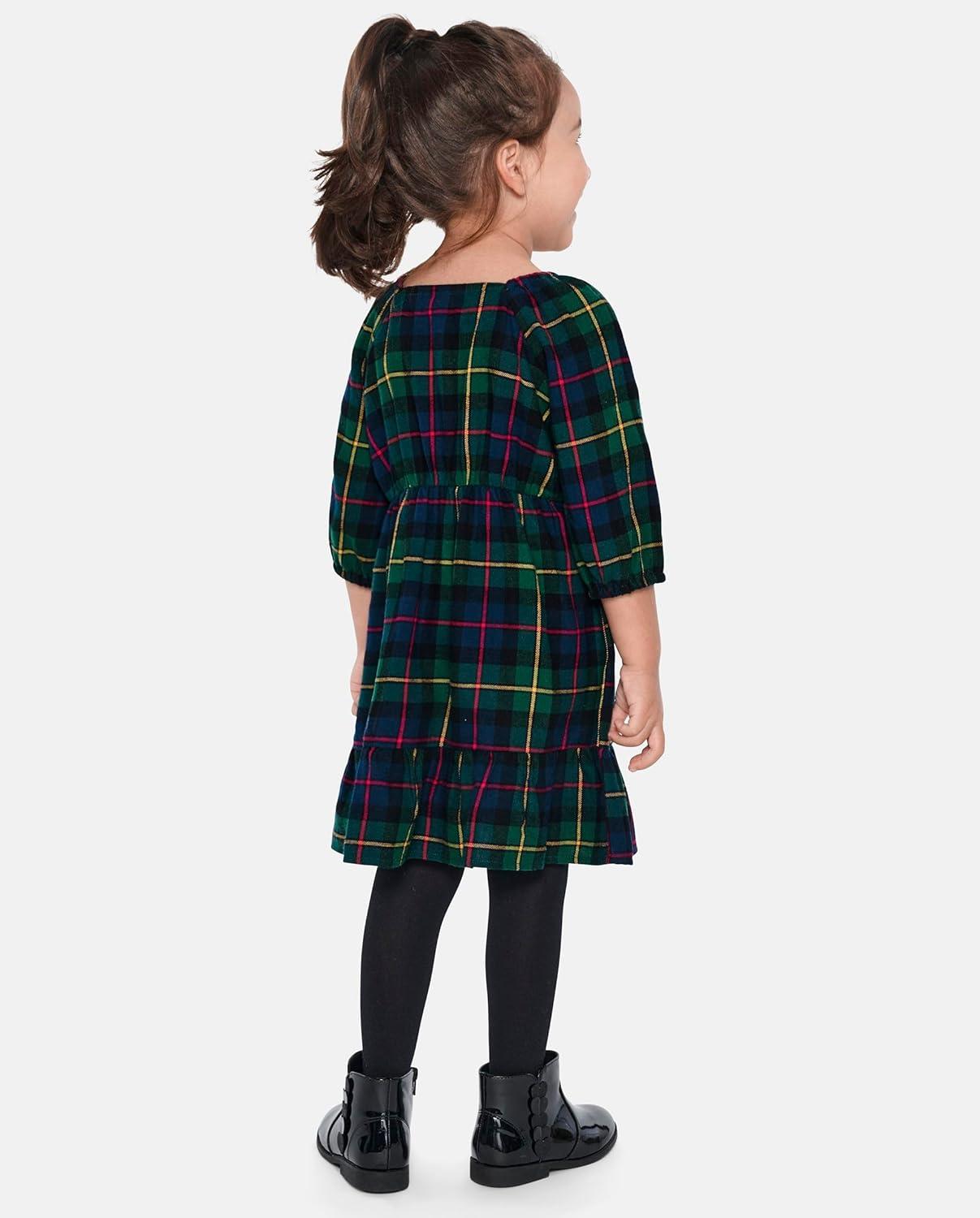 The Children’s Place Baby Girls’ Plaid Flannel Woven Tiered Dress(Green Plaid)