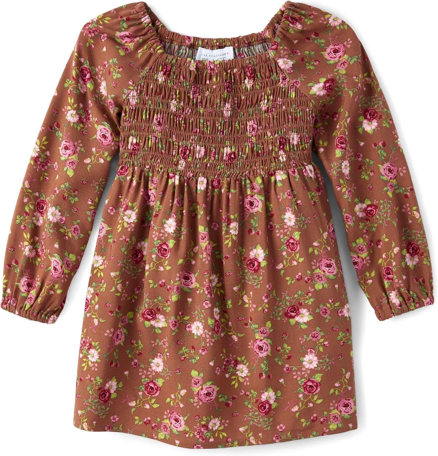 The Children’s Place Baby Girls’ Floral Smocked Dress(Honey Comb)