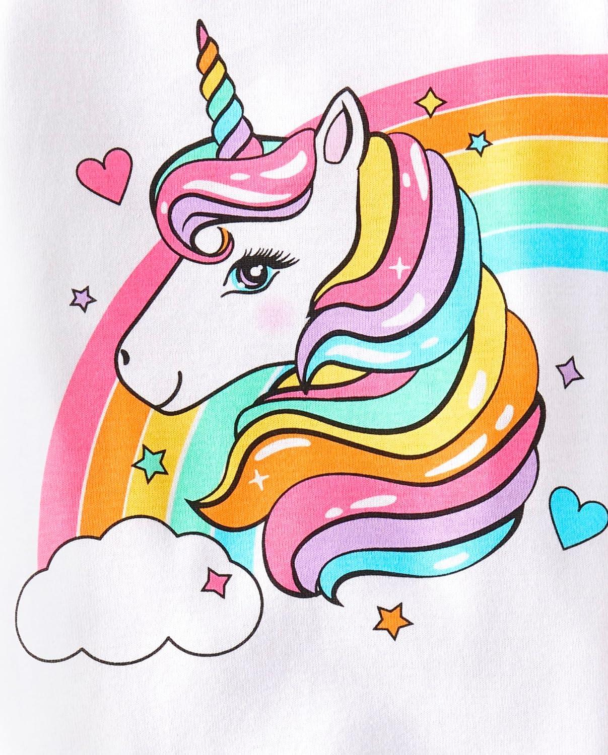 The Children’s Place Baby Toddler Girl Sleeve Top and Shorts Snug Fit 100% Cotton 2 Piece Pajama Set(Rainbow Unicorn)