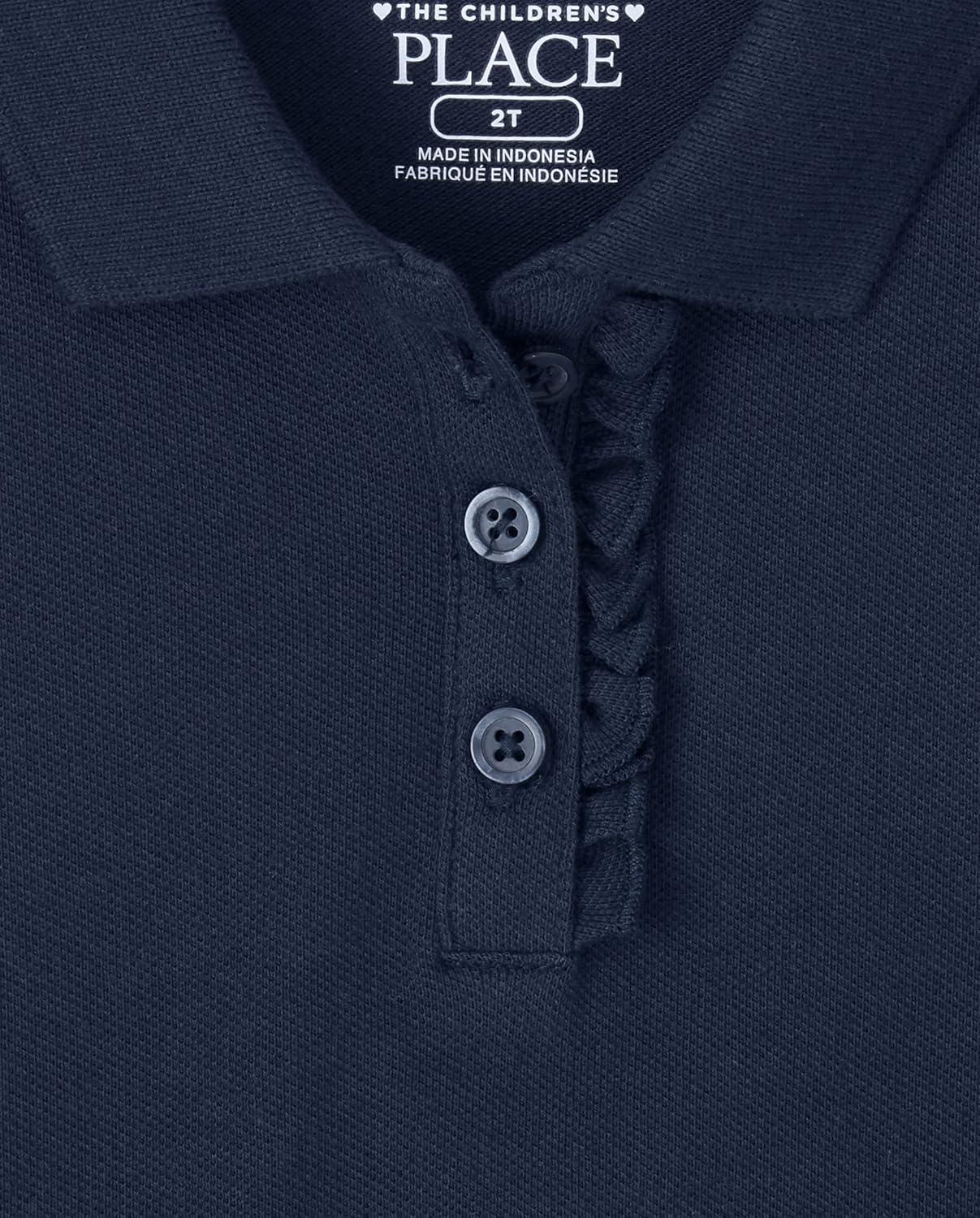 The Children’s Place Girls’ Toddler Mulipack Short Sleeve Ruffle Pique Polos(Renew Blue/White/Aurora Pink 3-pack)