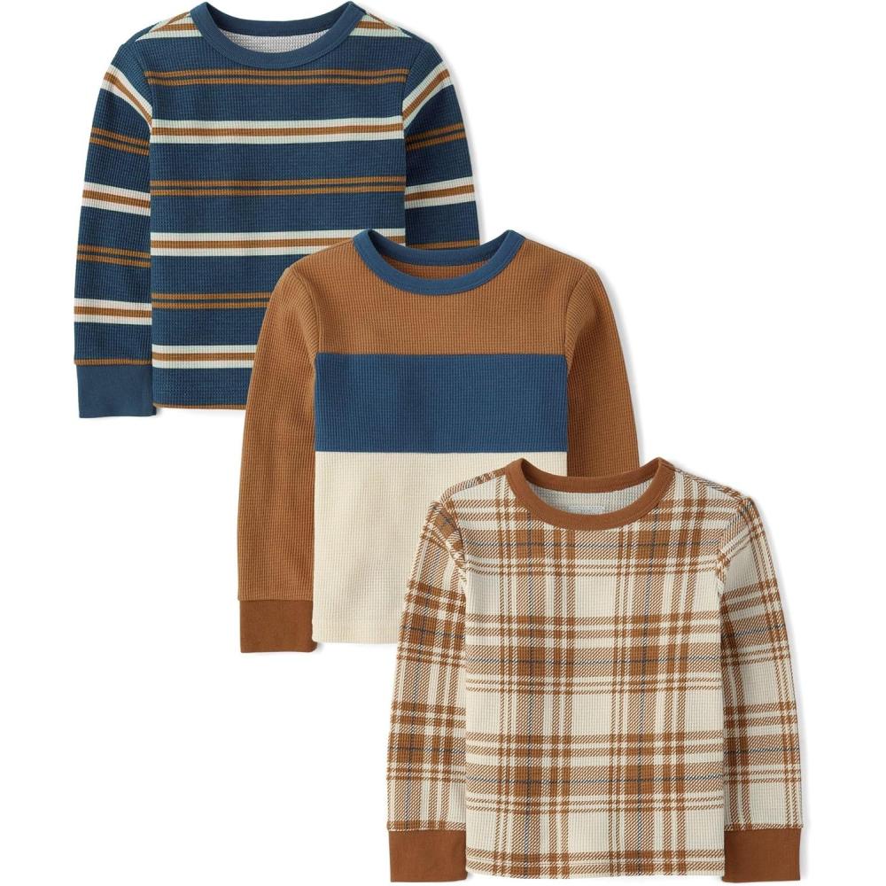 The Children’s Place Baby-Boys and Toddler Long Sleeve Everyday Casual Knit Shirt(Fedreal Blue Harvest 3-pack)