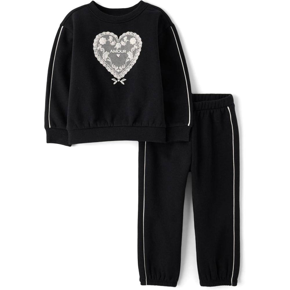 The Children’s Place baby-girls And Toddler Long Sleeve Active Shirt and Pant, 2 Piece Outfit(Black Heart)