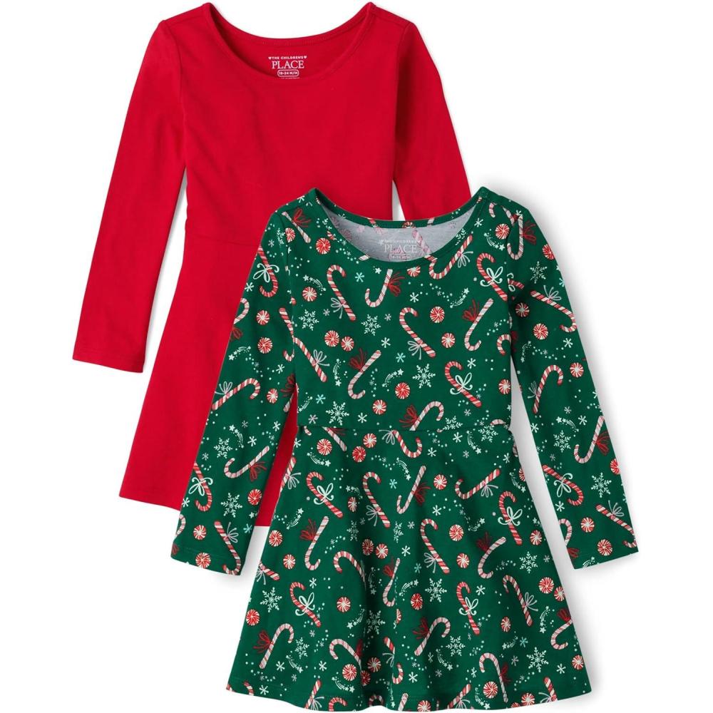 The Children’s Place Baby-Girls and Toddler Skater Dress, Long Sleeve(Red/Candy Cane Green)