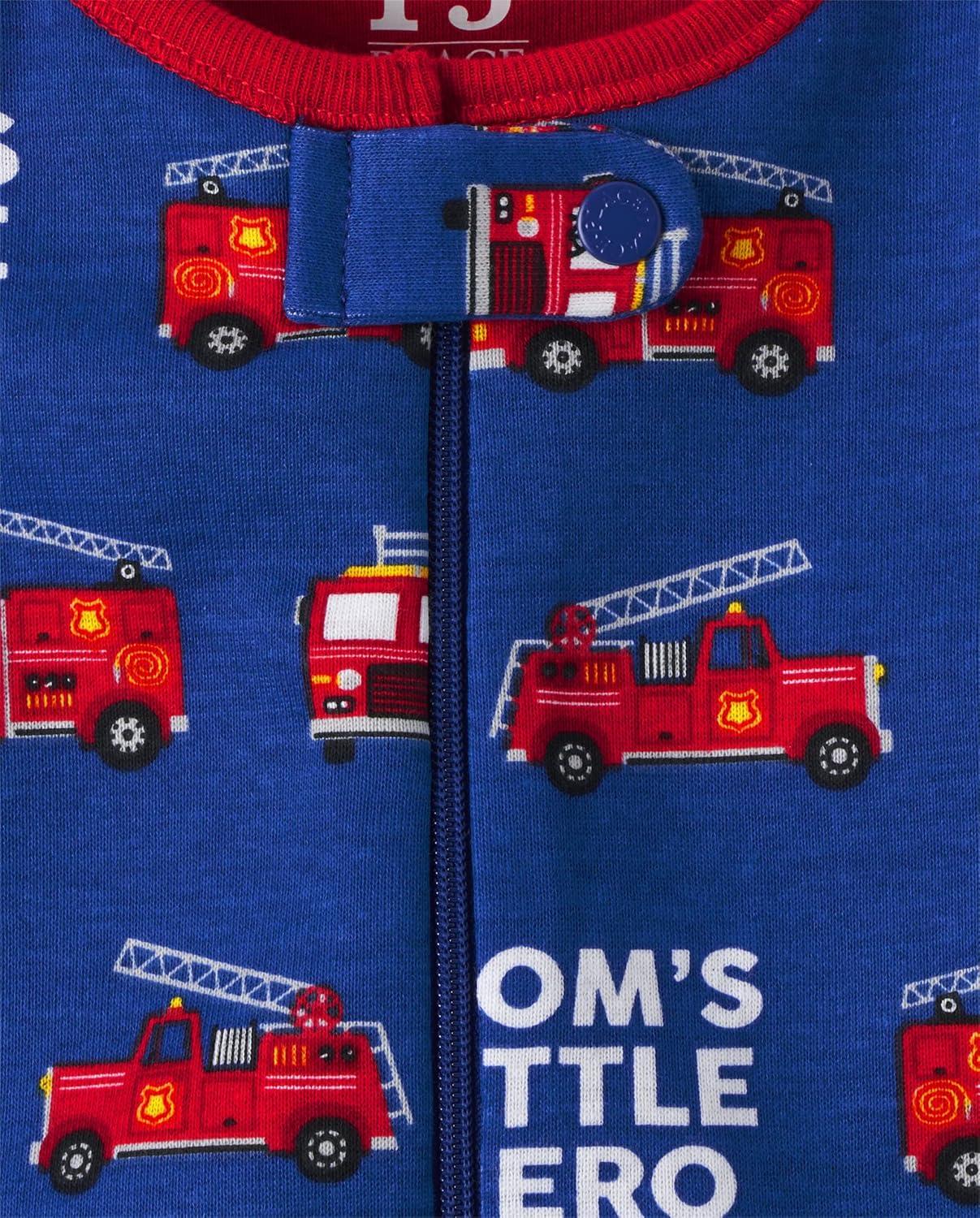 The Children’s Place boys Long Sleeve 100% Cotton Zip-front One Piece Footed Pajamas(Fire Trucks)