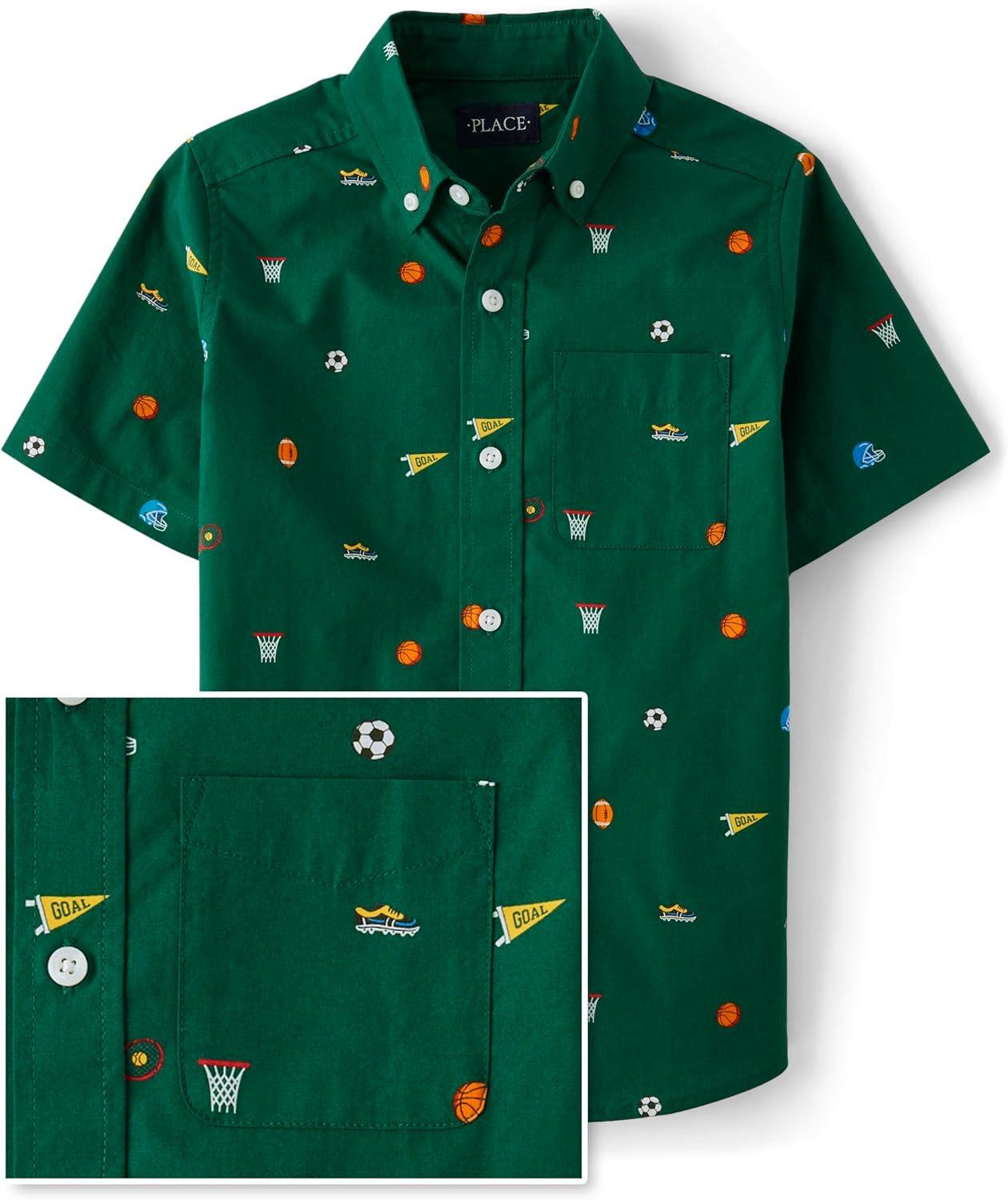 The Children’s Place boys Short Sleeve Button Up Shirt(Spruceshad Doodle)