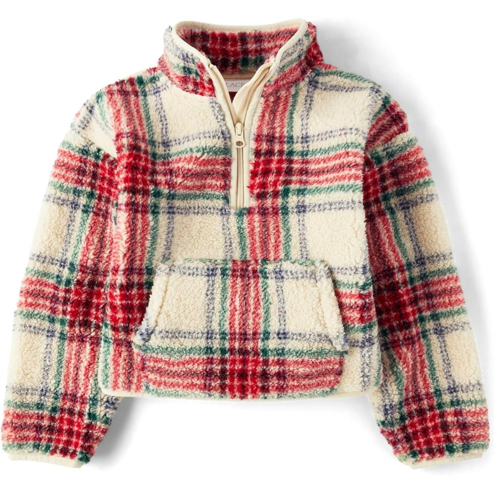 The Children’s Place girls Cozy Sherpa Quarter-zip Jacket(Hay Stack Plaid)