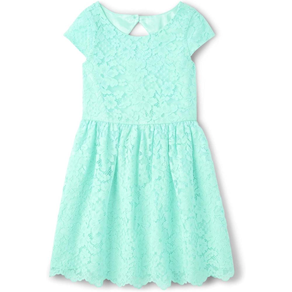 The Children’s Place Girls’ Short Sleeve Dressy Dresses(Mellow Aqua Lace)