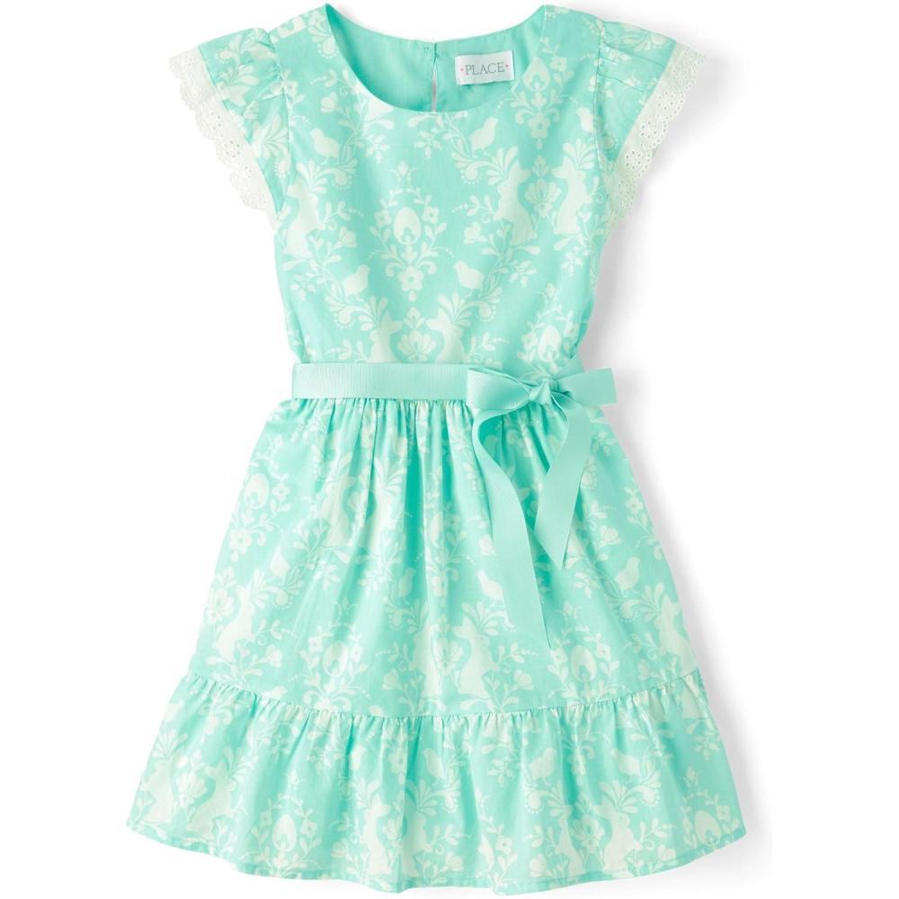 The Children’s Place Girls’ Short Sleeve Dressy Dresses(Mint Tea)