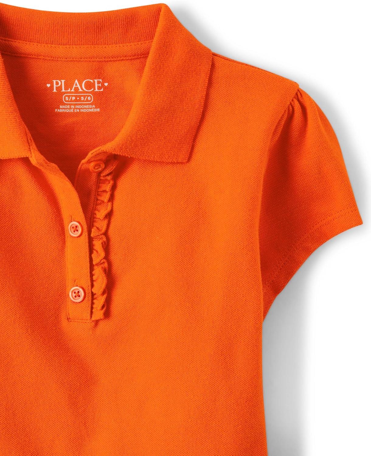 The Children’s Place Girls’ Short Sleeve Ruffle Pique Polo, 3 Pack(Flame)