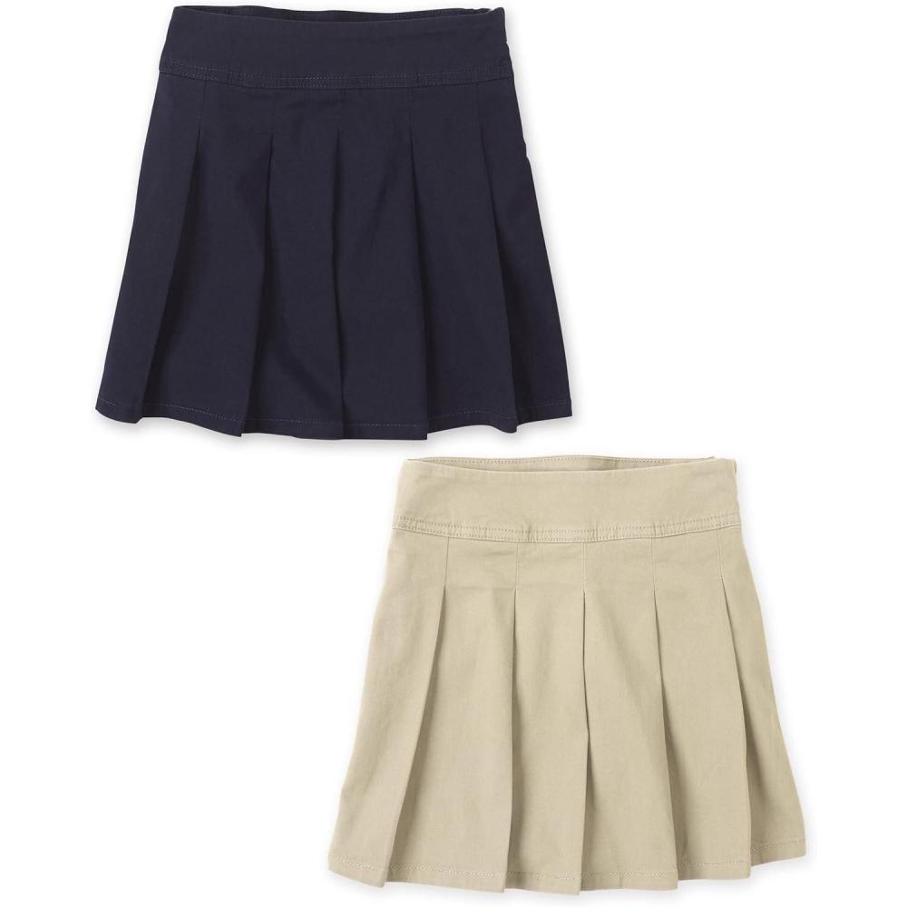 The Children’s Place Girls’ Uniform Pleated Skort(Sandy/Tidal 2-pack)